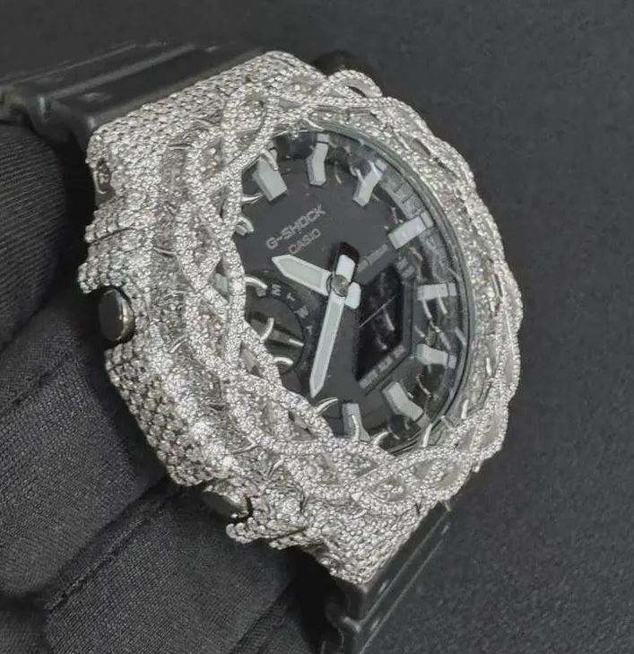 Iced Out Lab Diamond Mens Alloy Quartz Watch Business Style Glass Dial Pointer Custom Gift for Him