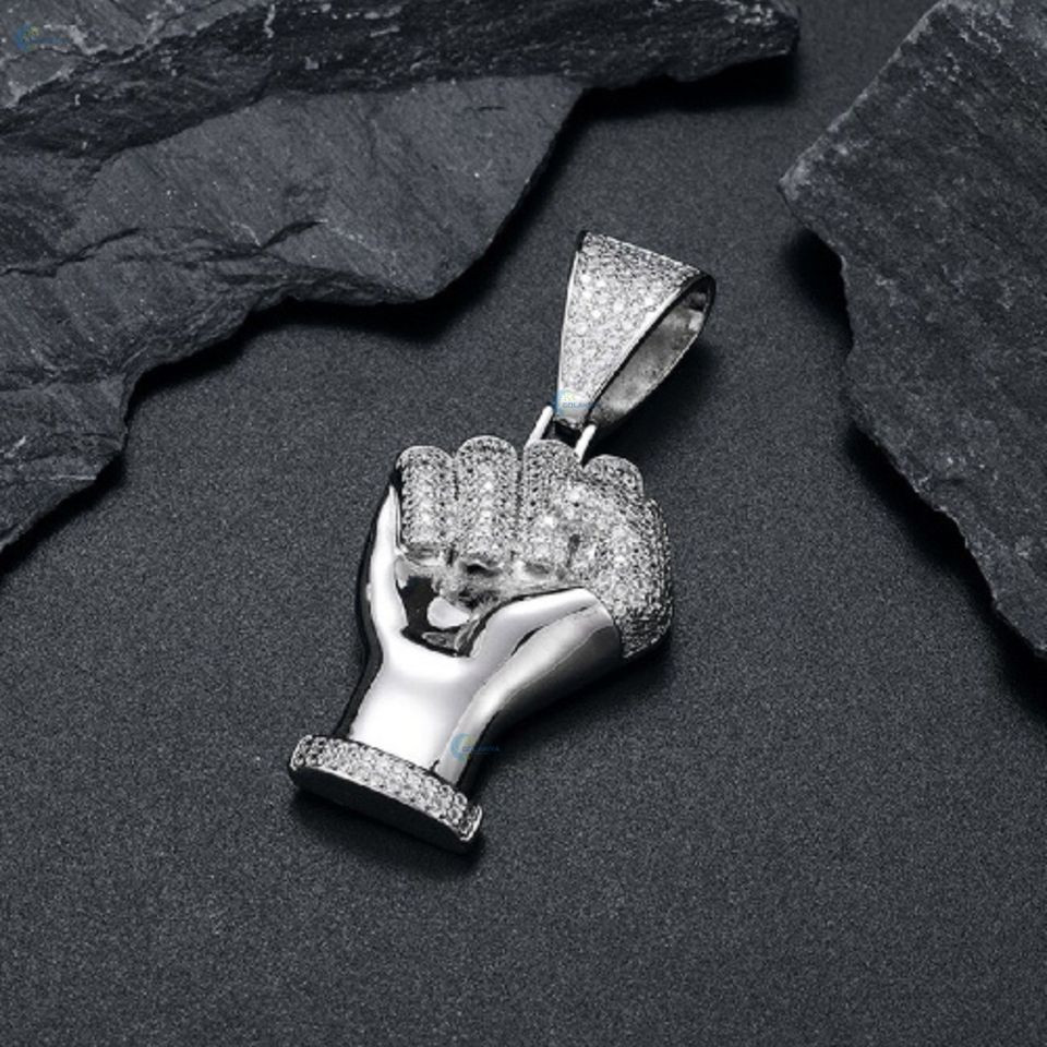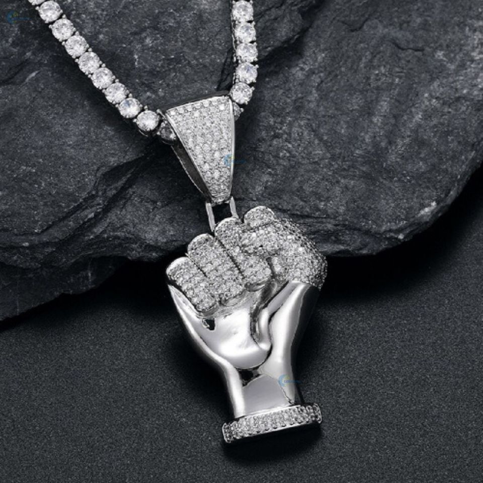 Iced Out Lab Grown Diamond Pendant Celebrity Style Hip Hop Necklace Personalized Fist Pendant
