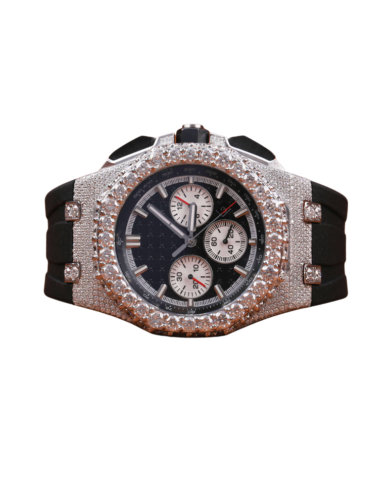 Iced Out Luxurious Customized White Gold Hip Hop Custom Black Band Dial Moissanite Diamond Watch For Men's Roman Watch