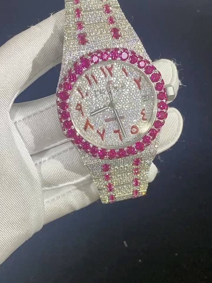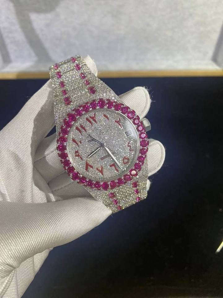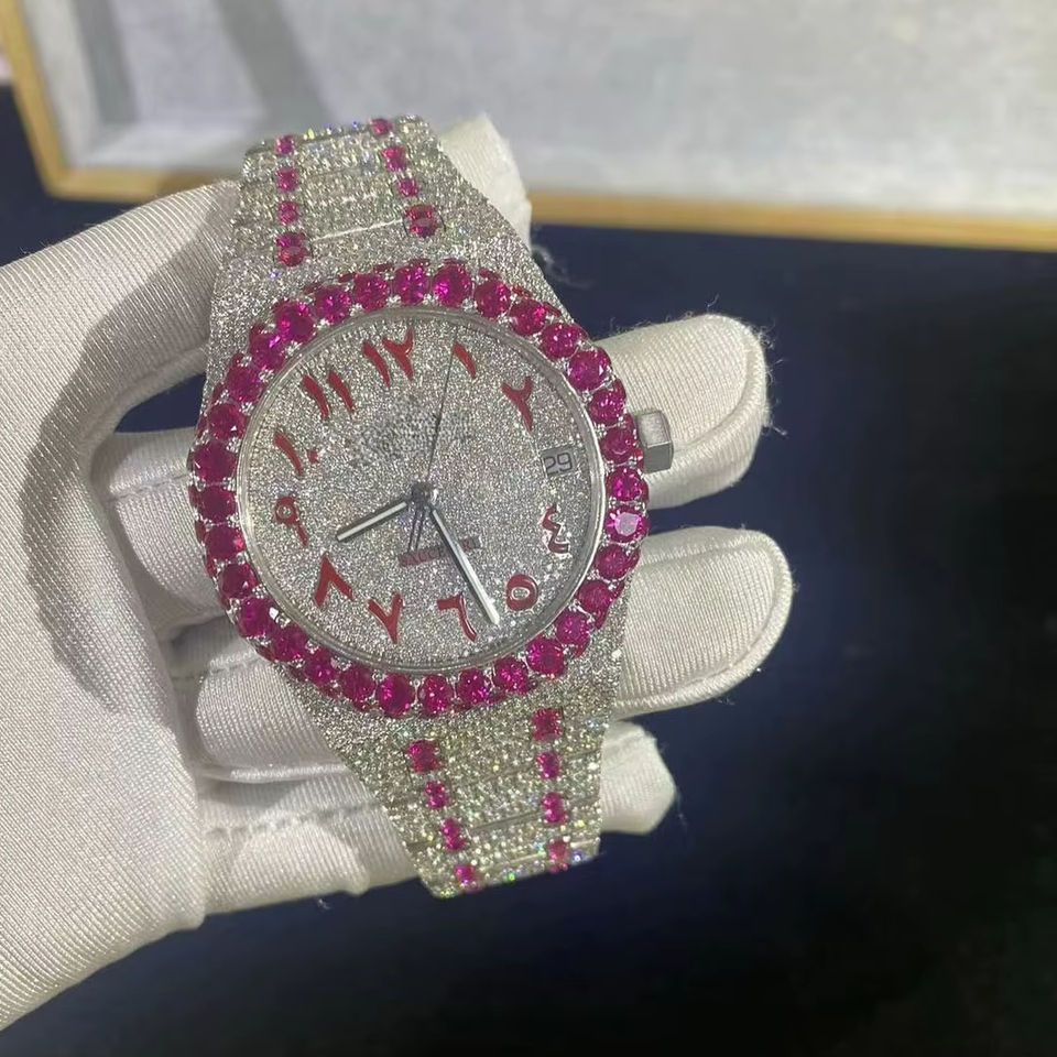 Luxury Antique Iced Stainless Steel Ladies High Quality Miyota Mechanical Movement Analog Dial Display Diamond Rhinestones Glass