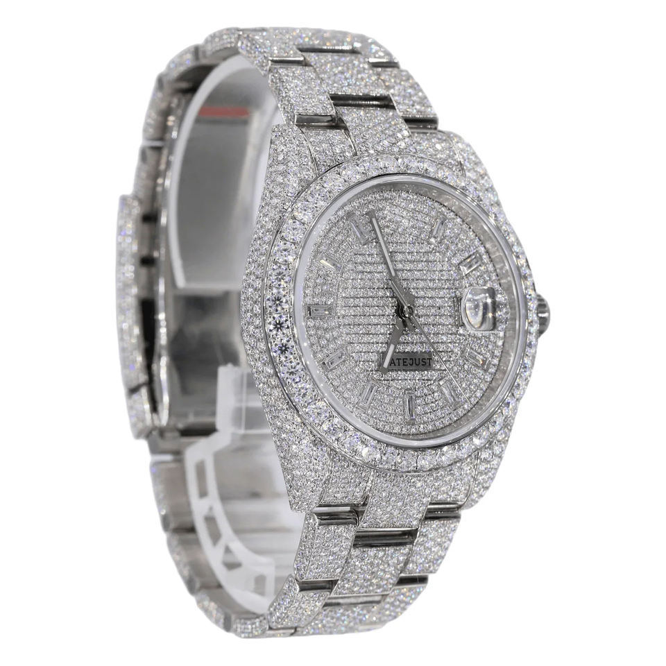 Iced Out Moissanite 20mm Glass Dial Hip Hop Luxury Stainless Steel Quartz Men's Jewelry Watch