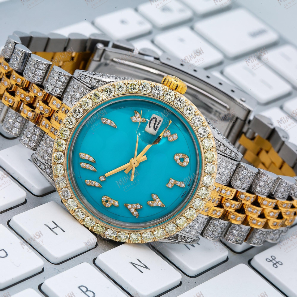 Iced Out Moissanite Diamond Watch Custom Black Dial, Roman Numerals, Date Feature, Full Pave Bracelet, Luxury Hip Hop Timepiece