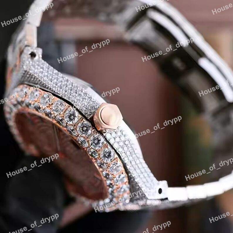 Iced Out Moissanite Diamond Watch For Men Stainless Steel Wrist Watch Bust Down Round Dial Case Watch
