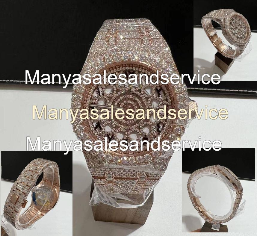 Iced Out Moissanite Diamond Watch Hip Hop Luxury Stainless Steel Moissanite Band Glass Dial 10 Bar Water Resistant Watch for Him