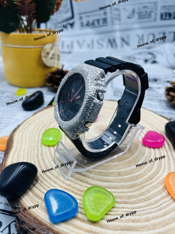 Iced Out Moissanite Diamond Watch Silver Moissanite Diamond Pave Bezel Black Dial Luxury Hip Hop Style Wrist Watch