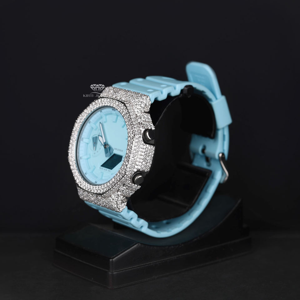 Keywords:Sky Blue Dial Iced Out Diamond Digital Watch
