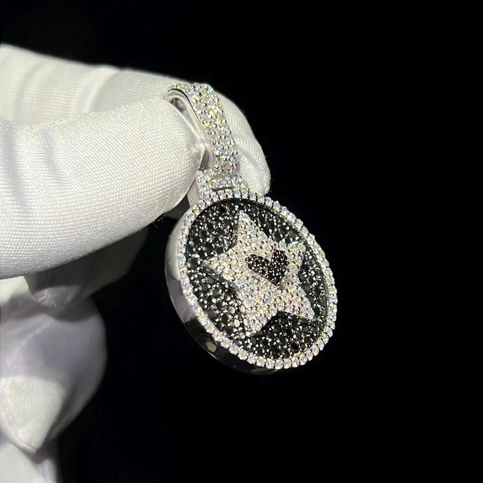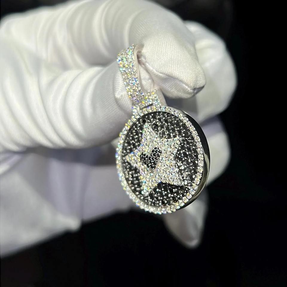 Iced Out Moissanite Hip Hop Pendant_ Custom 925 Sterling Silver Charm Online in India