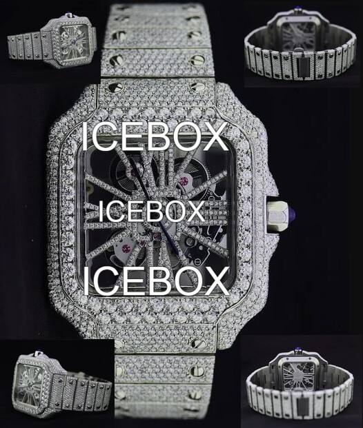 Iced Out Moissanite Stainless Steel Hip Hop Watch with Glass Dial Round Case 10 Bar Water Resistant Bracelet Clasp