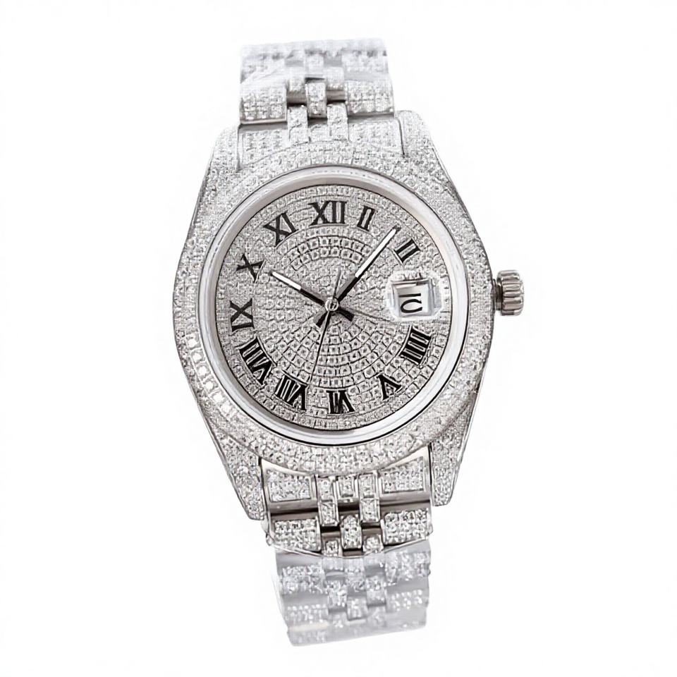 Iced Out Moissanite Stainless Steel Glass Dial Watch Hip Hop Luxury Case 10 Bar Water Resistant Bracelet Clasp Custom Design Men