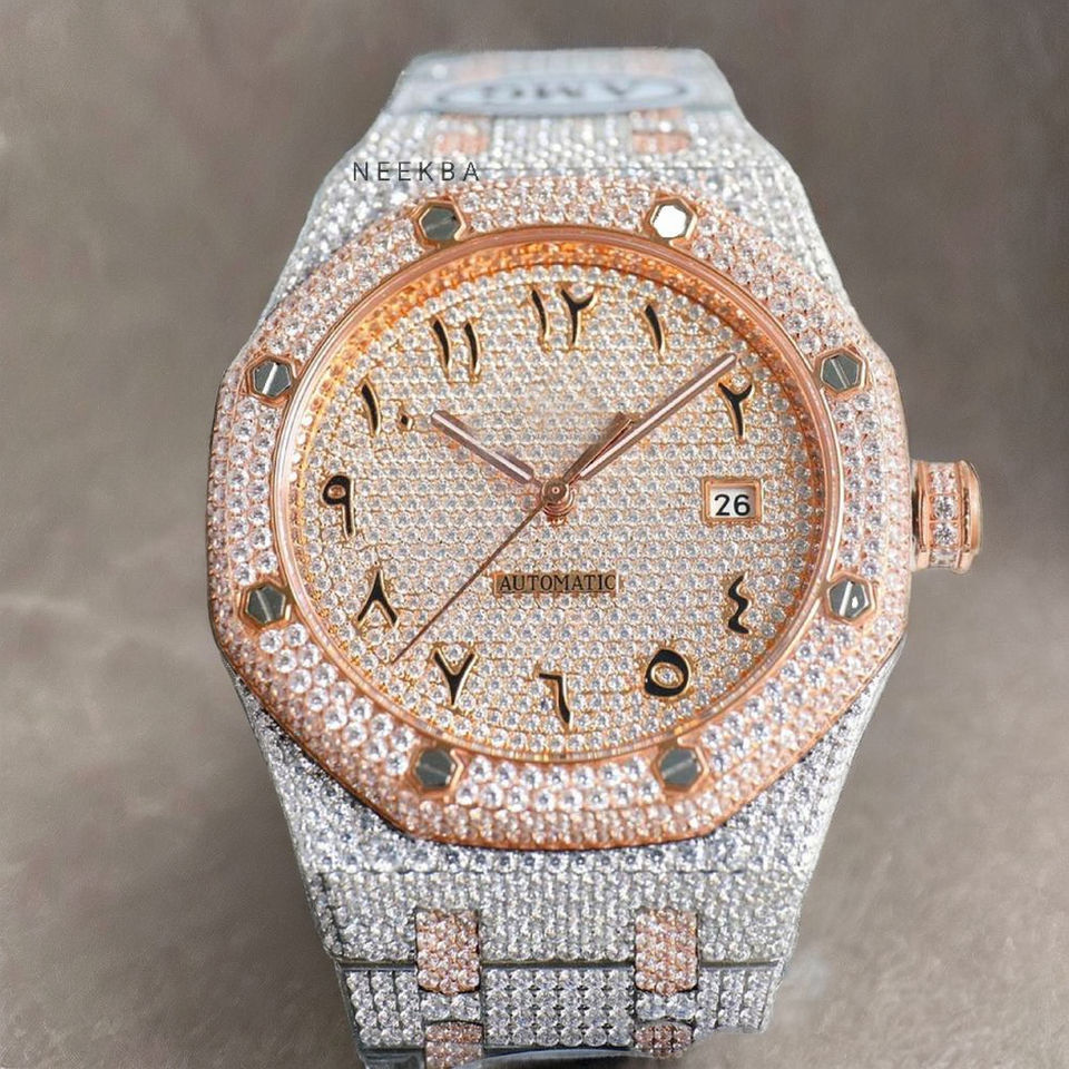 Iced Out Moissanite Watch Pass Diamond Tester, Arabic Numerals Dial Diamond watch, 100% Hand-Set Watch from Indian Supplier