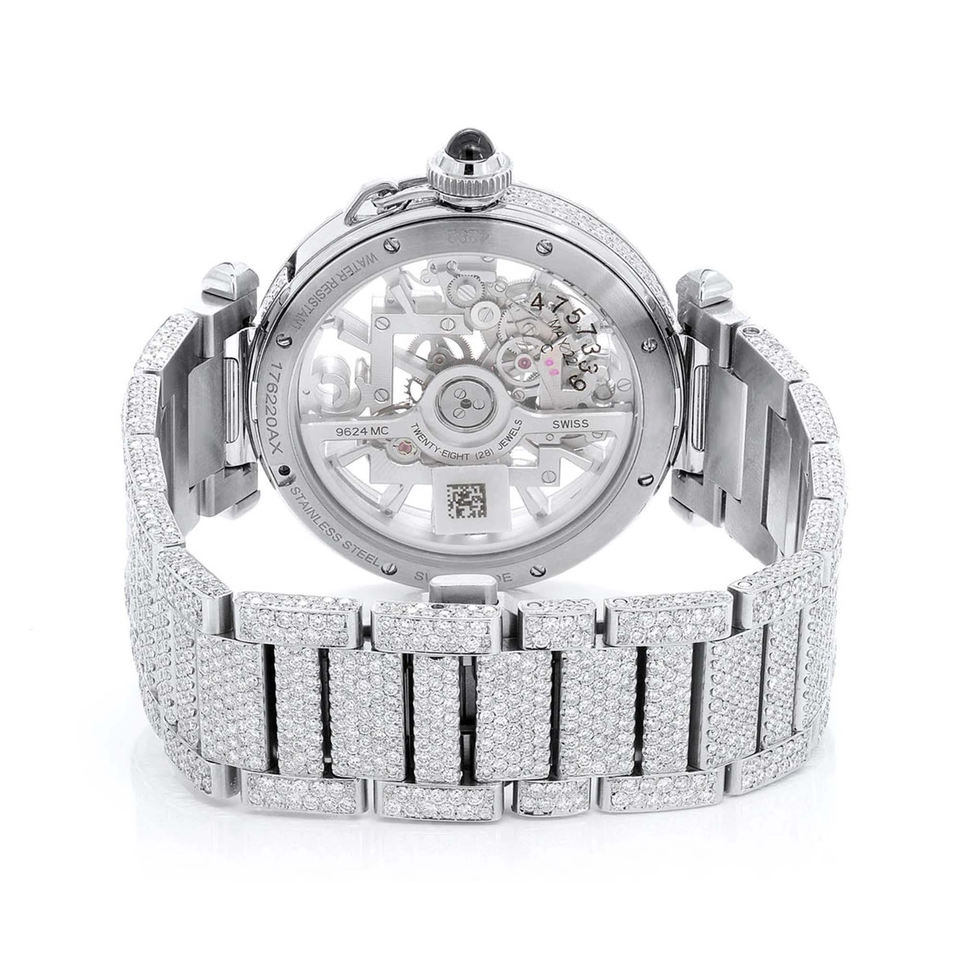 Iced Out Moissanite Watch VVS Diamond Hip Hop Fashion Stainless Steel Quartz 20mm Band Glass Dial Men