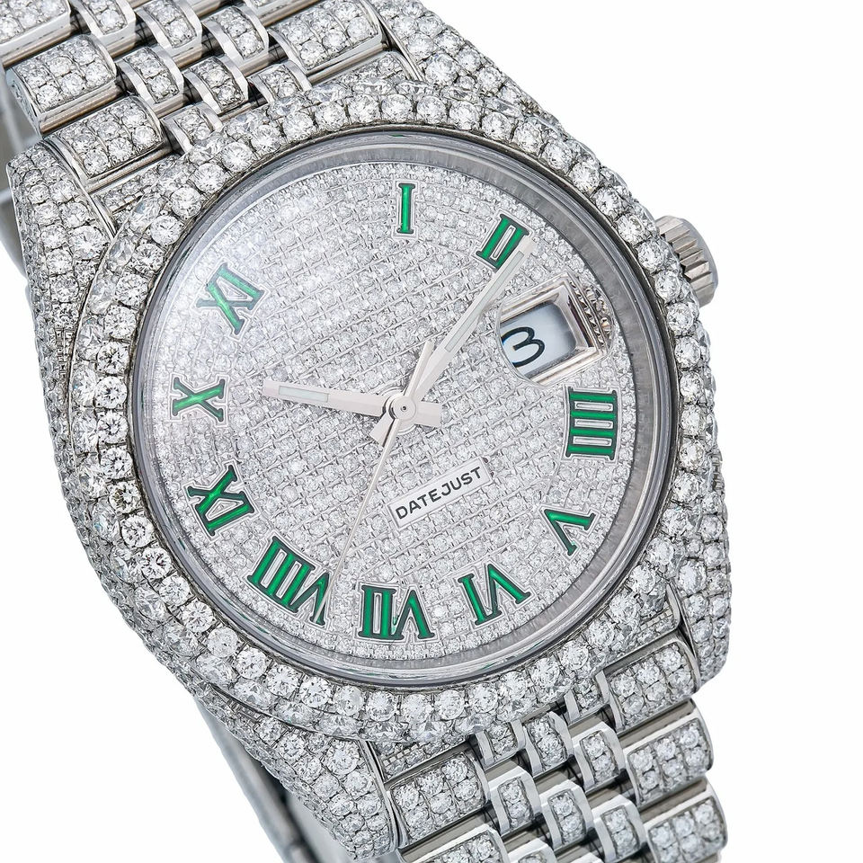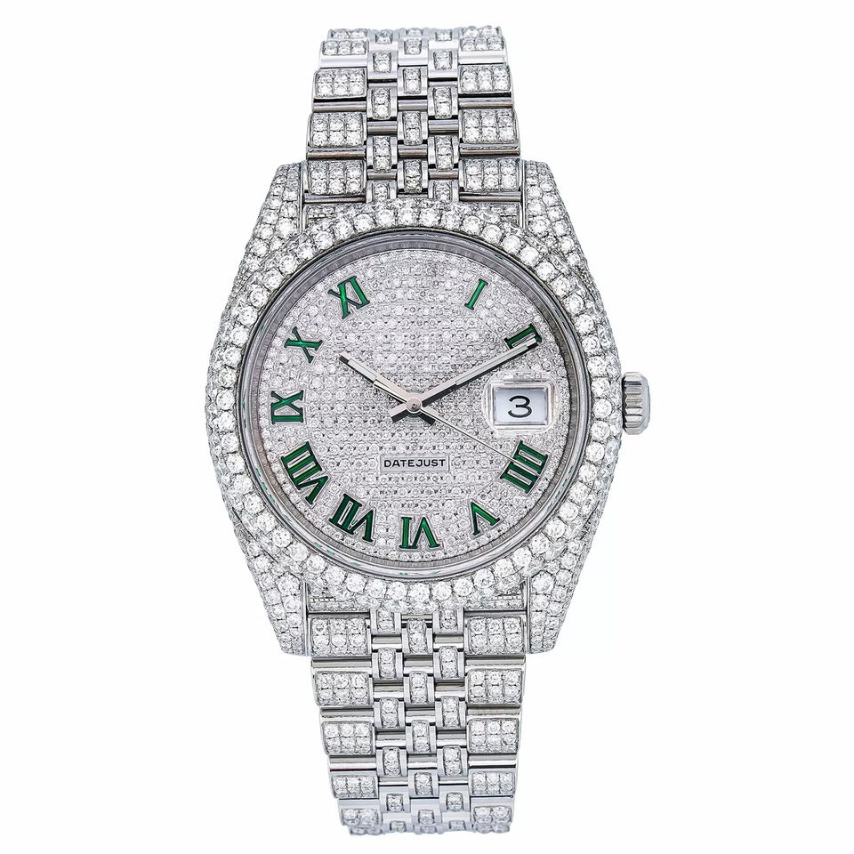 Iced Out Moissanite Watch VVS Diamond Hip Hop Modern Stainless Steel Quartz Men Fashion 20mm Band Glass Dial