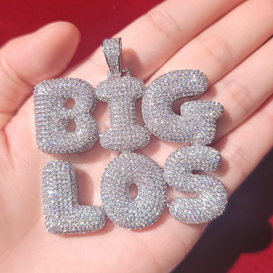 Iced Out Personalized Bubble Name Hip Hop Pendant Moissanite Round Brilliant Diamond 925 Silver Fine Jewelry Pendants & Charms