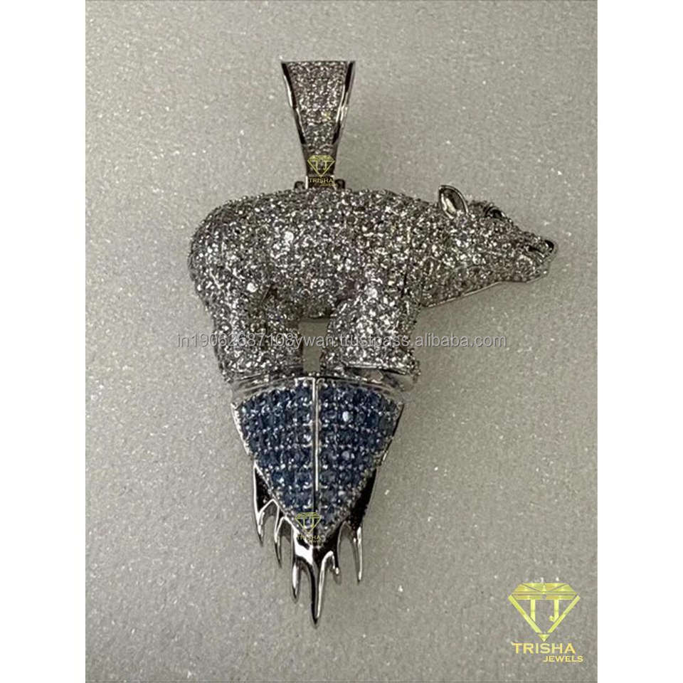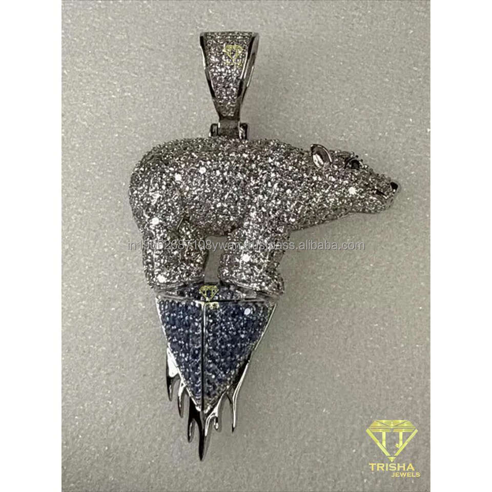 Iced Out Polar "Bear" Pendant Necklace 925 Sterling Silver with VVS Lab Grown Diamonds Luxury Bling For Mens