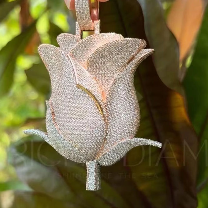 Iced Out Rose Pendant Moissanite Flower Pendant 925 Sterling Silver Rose Pendant & Other Diamond Jewelry