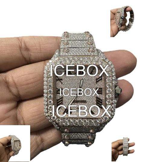 Iced Out Square Moissanite Watch with Glass Dial and Stainless Steel Bracelet Clasp 10 Bar Water Resistant Hip Hop Style Watches