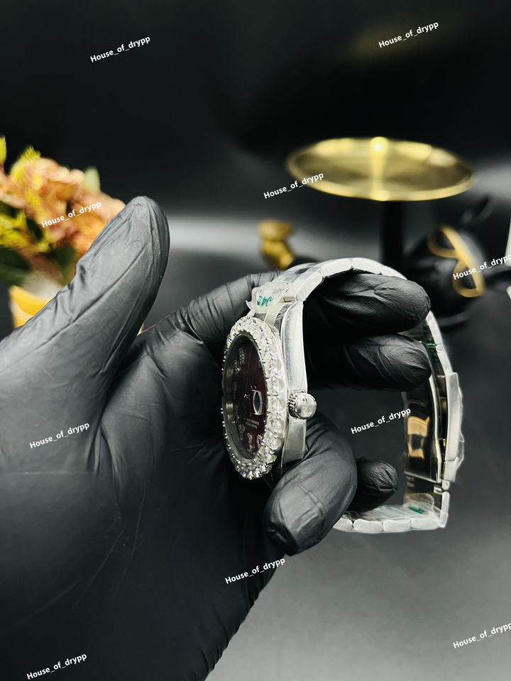 Iced Out Stainless Steel Moissanite Diamond Watch With Red Dial Diamond Look Bezel Luxury Statement Wristwatch