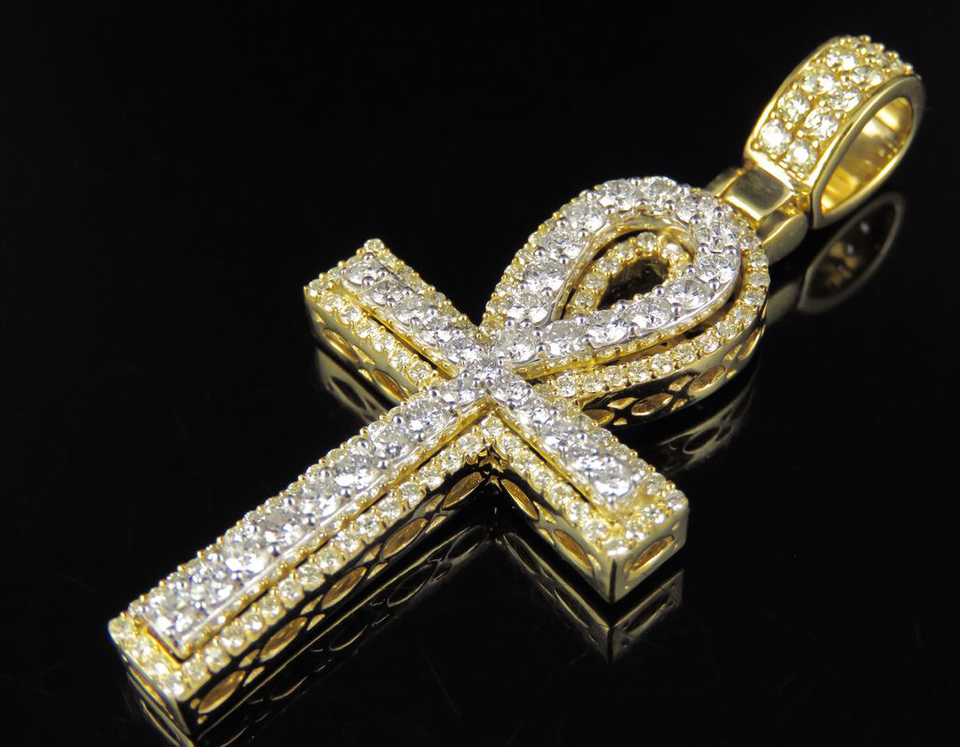 Iced Out VVS Moissanite Diamond Cross Pendant In 925 Sterling Silver Ankh Cross Necklace for Men Hip Hop Rock Rapper Jewelry