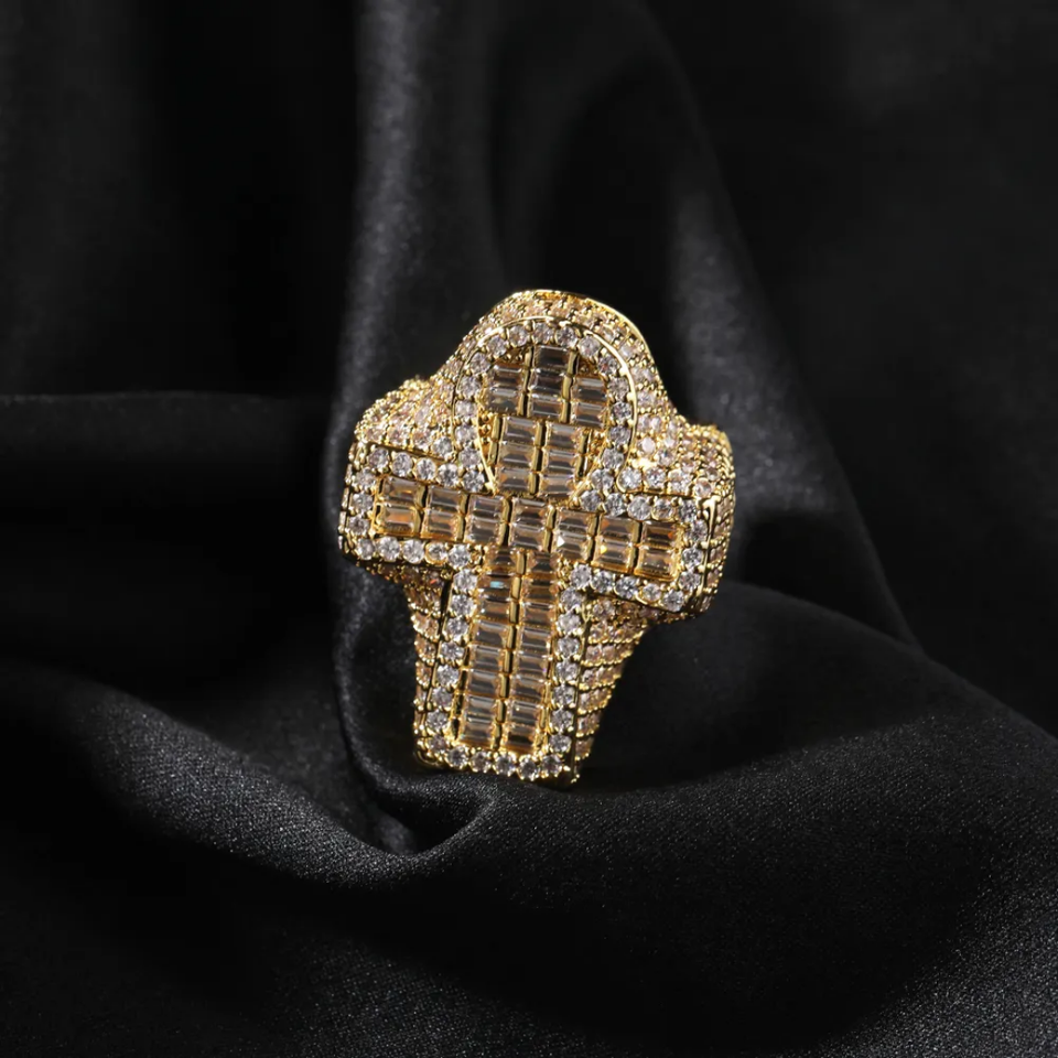 Iced VVS Moissanite Diamond Key Cross Ring Certified Diamond Tester Approved HipHop Bling Sterling Silver Wedding Party Unisex