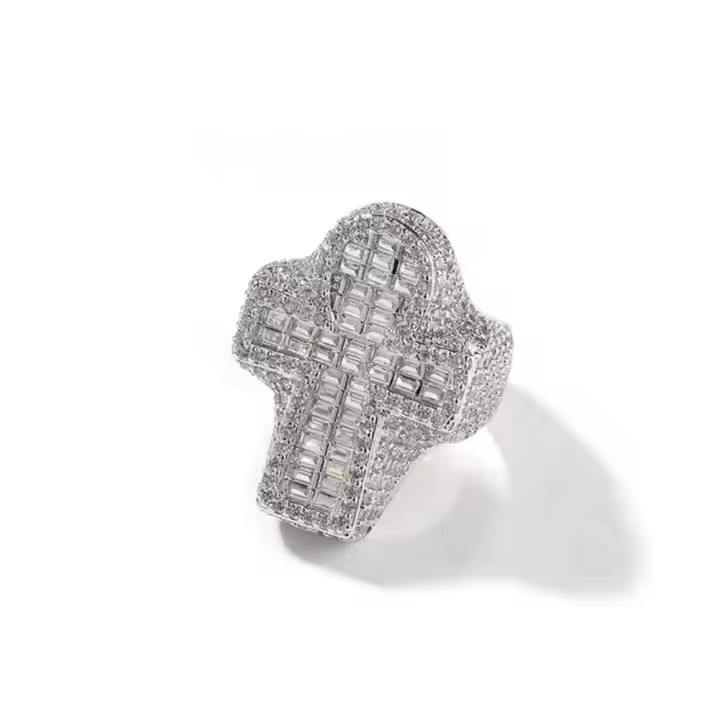 Iced Out Lab Grown VVS Diamond Radiant Cut Key Cross Ring IGI Certified HipHop Bling