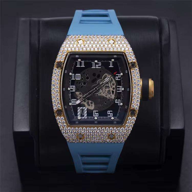 Iced VVS Moissanite Diamond Business Sport Fashion Quartz Movement Stainless Steel Case Silicone Coin Watch 20mm Width Wedding