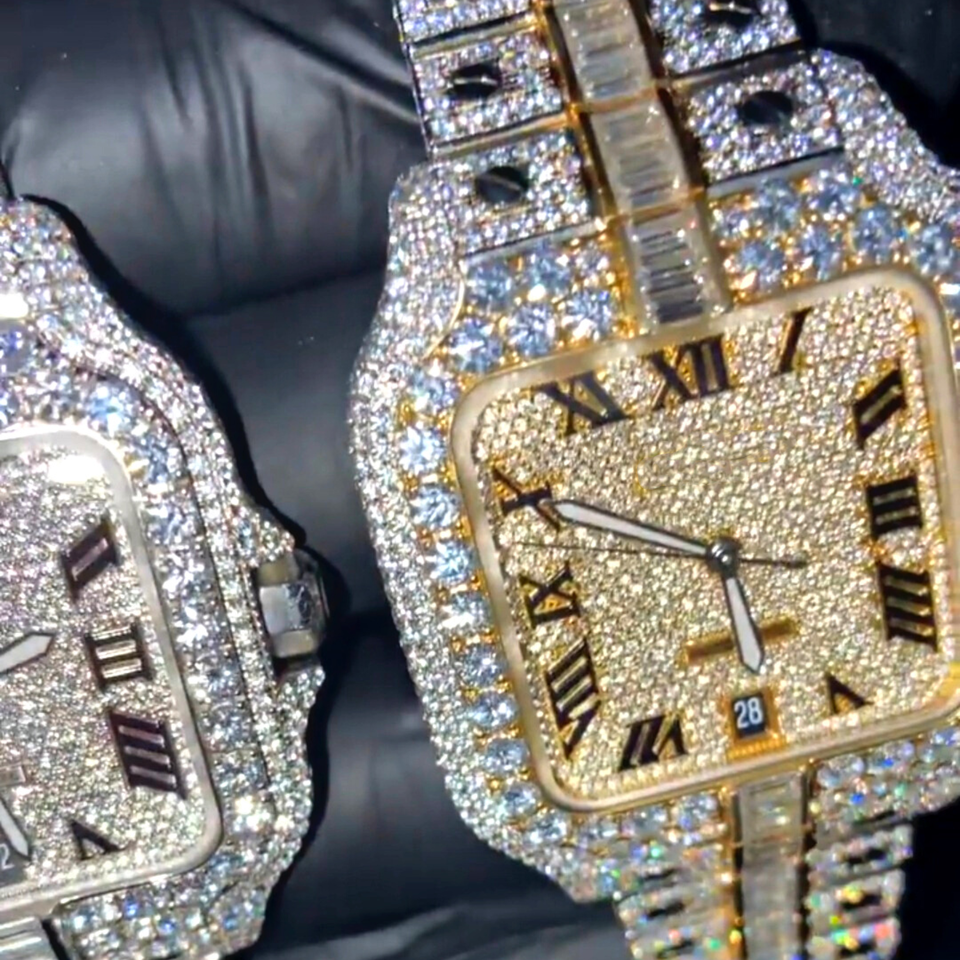 Iced VVS Moissanite Square Alloy Yellow Gold Watches | Luxury Skeleton Design | Limited Edition | Wholesale Diamond Tester