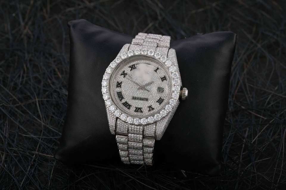 Icedown VVS Clarity Moissanite Diamond Antique Automatic Studded Unisex Wrist Watches for Men Women Direct Factory price