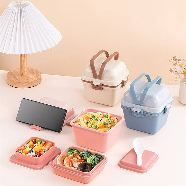 Icen B21 950ML Japanese 3 Compartment Bento Lunch Box Set Plastic BPA-Free with Heatable Utensils for Kids and Work