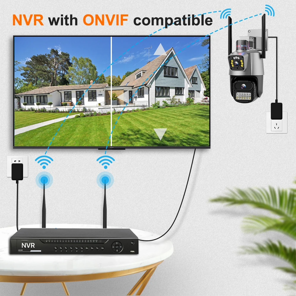 Icsee 4K 8MP 3.5inch 2 Camera Lens 2 Screen 360 Degree Security Surveillance CCTV Camera Motion Tracking Alarm with Siren Light
