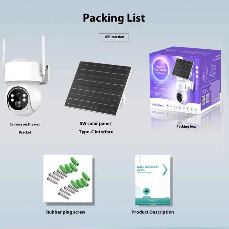 Icsee 4MP WiFi Solar CCTV Camera HD Outdoor 2K Remote Rainproof Surveillance Low-Power Battery Network Home PTZ Remote Control