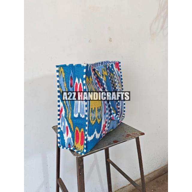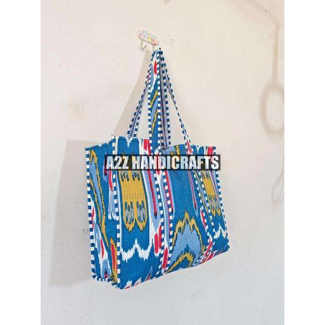 Ikat Print Cotton Reversible Large Quilted Tote Bag Handmade Bag Eco-Friendly Grocery Artist Bag Two PC Handles Saddle Closure