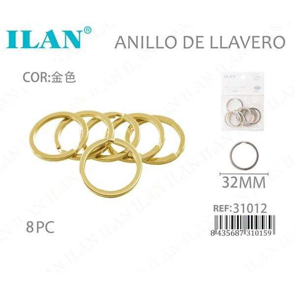 Ilan Keyring Ring 32Mm Gold Color 8Pc