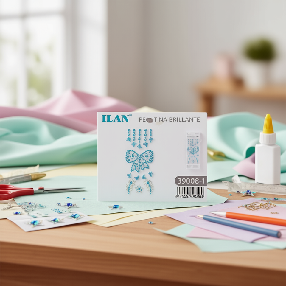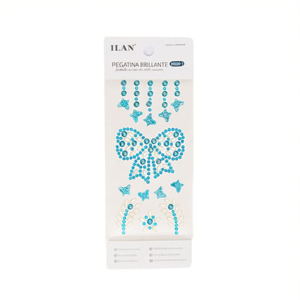 Ilan Shiny Rhinestone Stickers 39008-1 Blue Bow Star Design