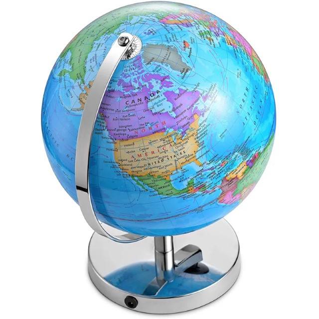 Illuminated World Globe with Sturdy Chrome Rotating Stand Educational Geography Desk Decor Executive Gift Light
