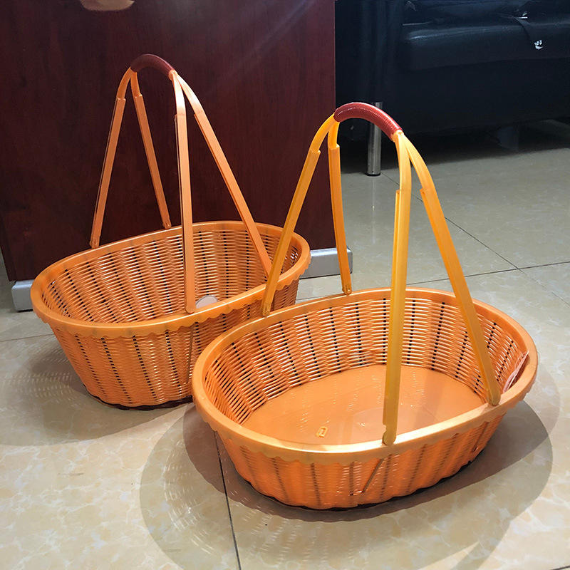 Imitation Rattan Basket Oval Plastic Handle M Size Portable Storage For Fruits Vegetables Snacks