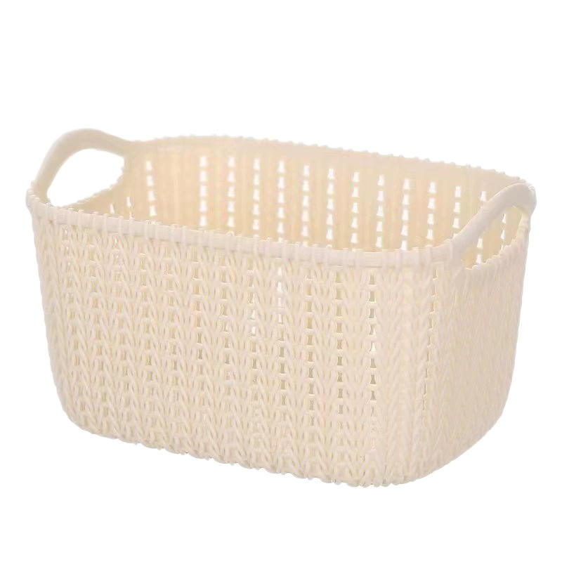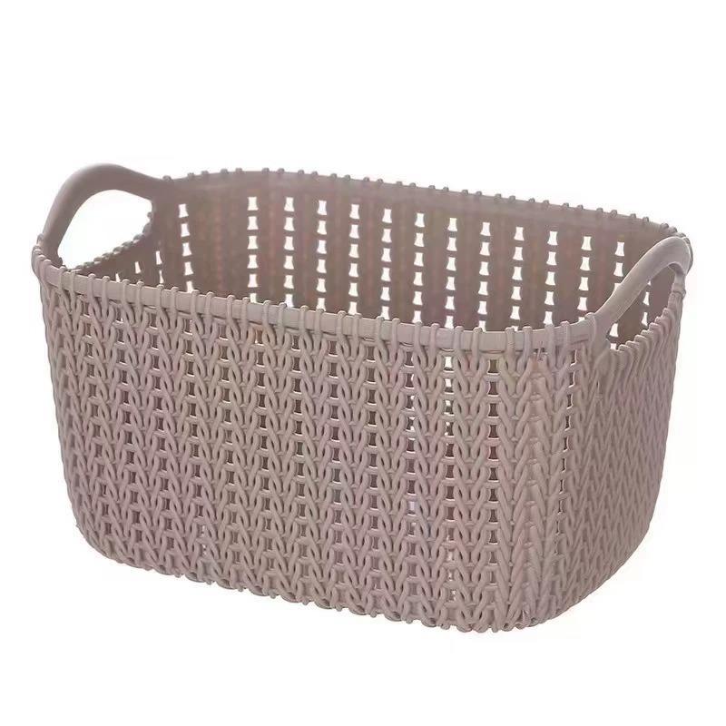 Imitation Rattan Storage Basket Rectangle With Handle For Home Kitchen Toy Snack Organizing Off White Gray Dark Brown Pink S