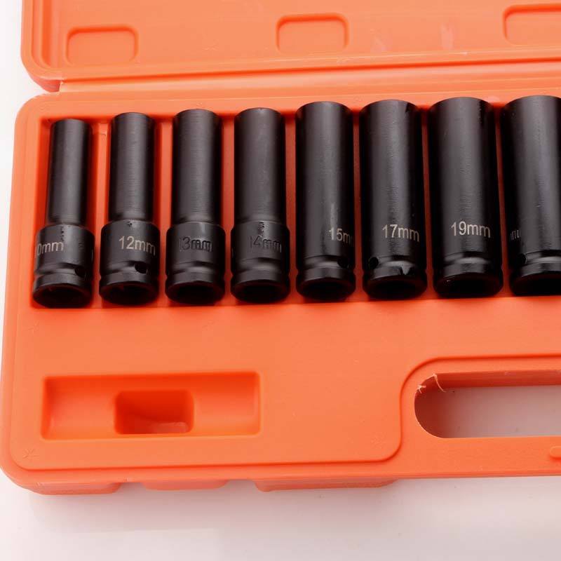 Impact Socket Set 1/2 In Metric 10 Piece Auto Repair Tool Kit Carbon Steel