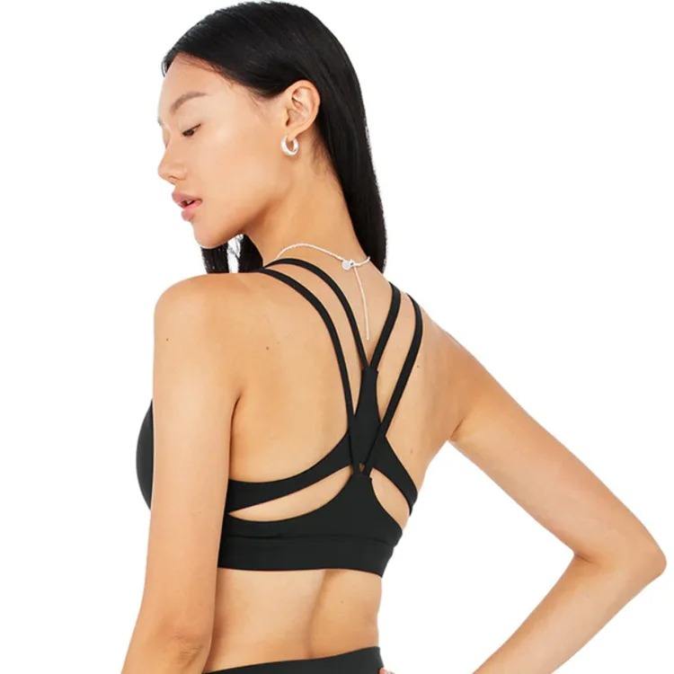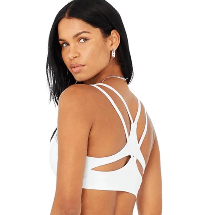 Impact Workout Sports Bras for Women Padded Strappy Open Back Four Needles Six Lines Sport Bra Yoga Crop Top Cross Back Gym Bra