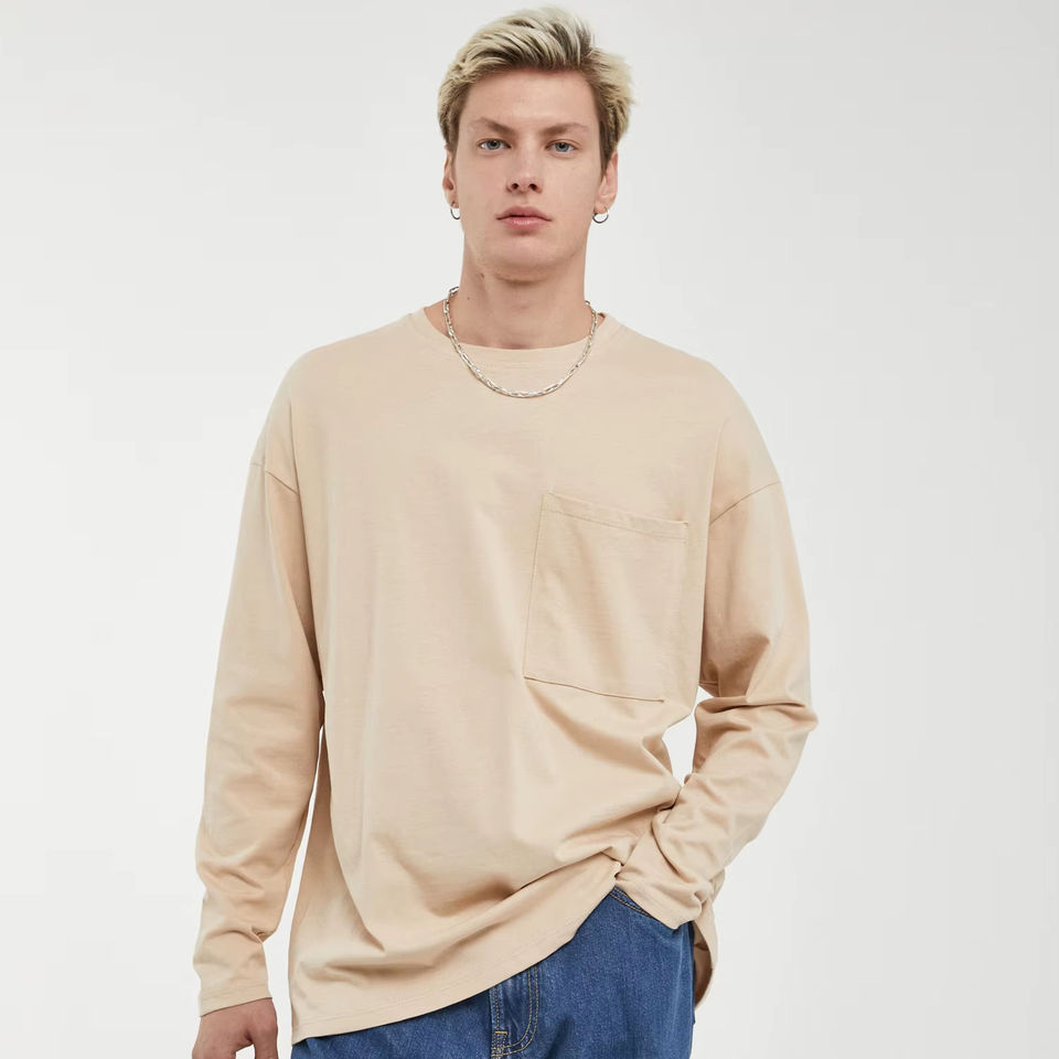 Imperio Oversized Long Sleeve T-Shirt Front Pocket Vintage Style Printed Design 100% Cotton Breathable Comfortable Casual Men's