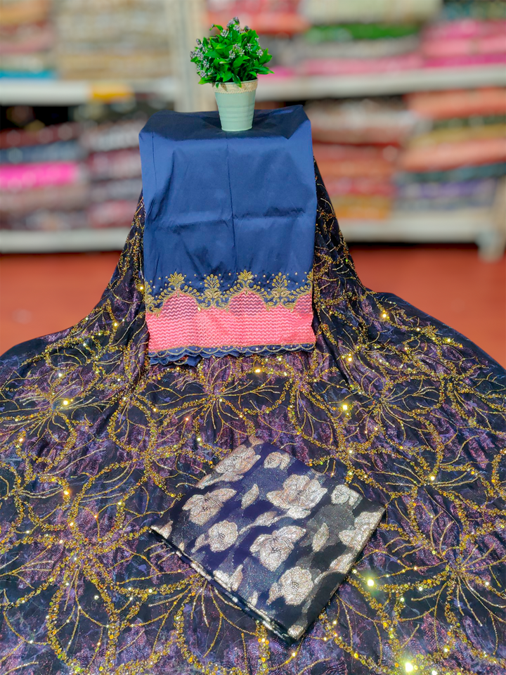 Imported Indian Print Jacquard Fransawi Dirac Set Stone Elegant Design Women's Wedding & Evening Dresses for Girls