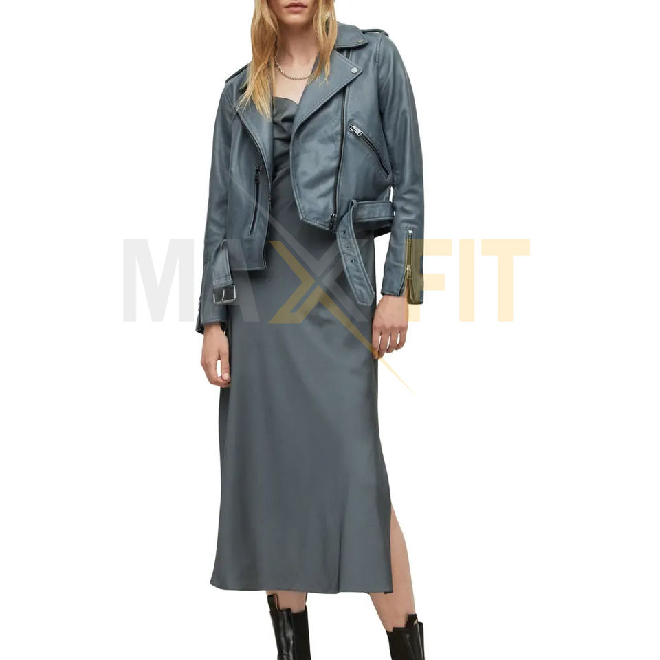 In Gray Color Customization Portable Product Women Clothing Leather Jackets,Best Supplier Leather Jacket by MAXFIT ENTERPRISES