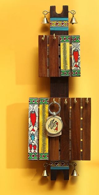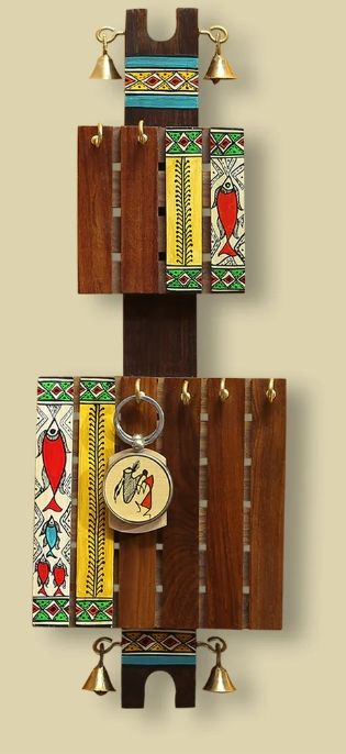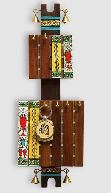 In-Key-Geneous Madhubani Hand-Painted Key Holder In Sheesham & Teak Wood 6 Hooks Mounted Mail Holder for Home Wall
