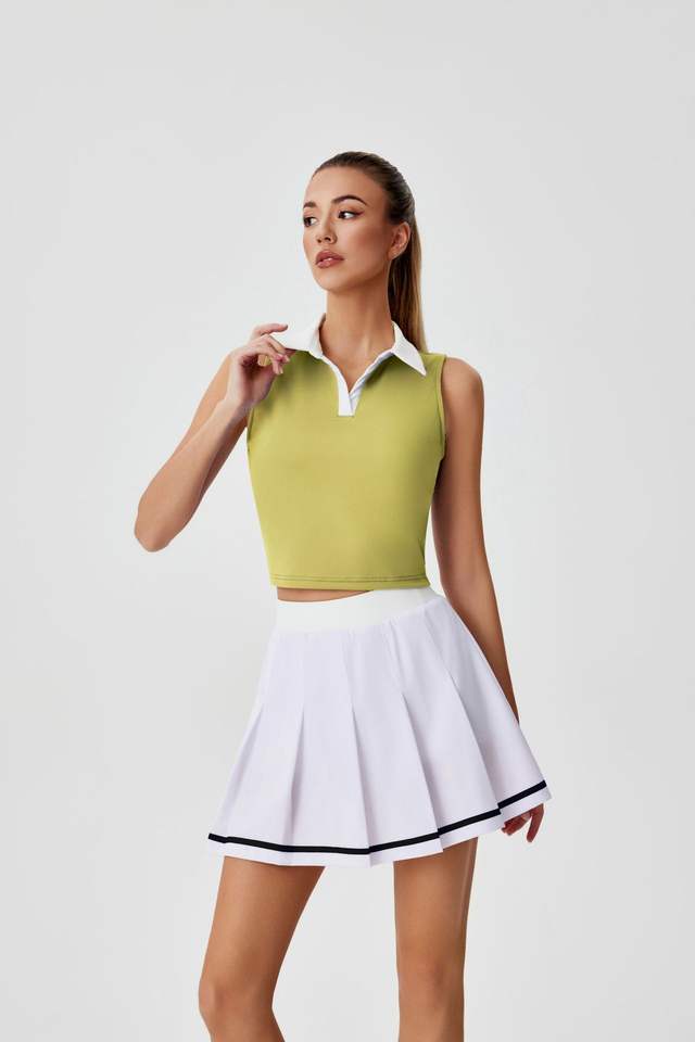 Custom Print Logo Nylon Stretch Classic Pleated Sports Skirt Dry Fit Sleeveless Polo Collar Tank Top One Set Tennis Outfit