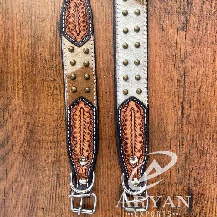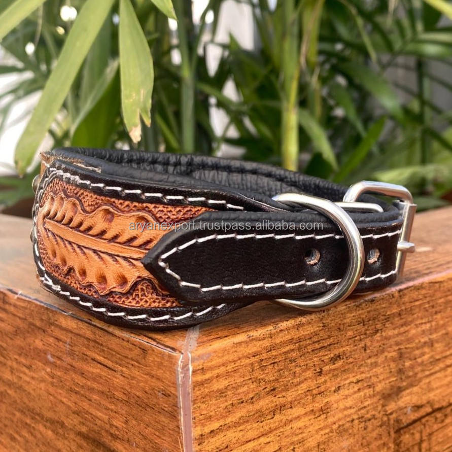 In-Stock Durable Cowhide Leather Pet Collar for Small & Medium Dogs and Padded Neck Ring Hand Tooled Genuine Leather Dog Collars