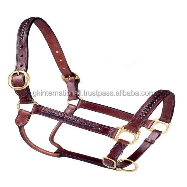 In Stock Equestrian Adjustable Leather Horse Bridle Halter Custom made hand braided design padded Leather Horse Halter