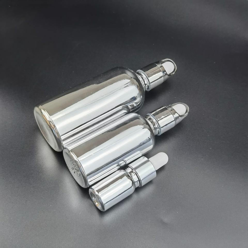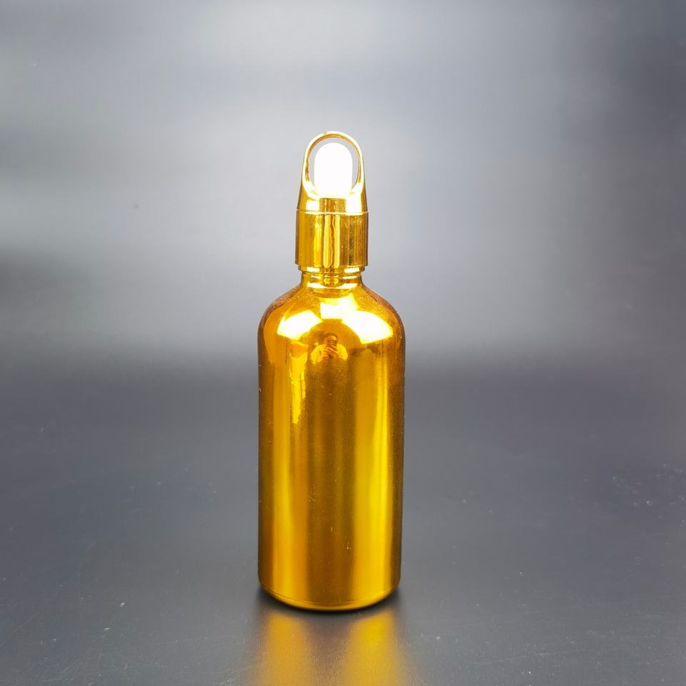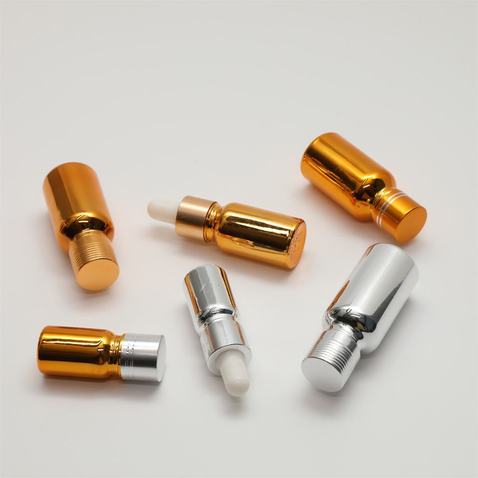 In Stock Hair Oil Dropper 15ml 30ml 50ml Electroplating Gold Silver Glass Essential Oil Bottles with Gold Dropper Lid