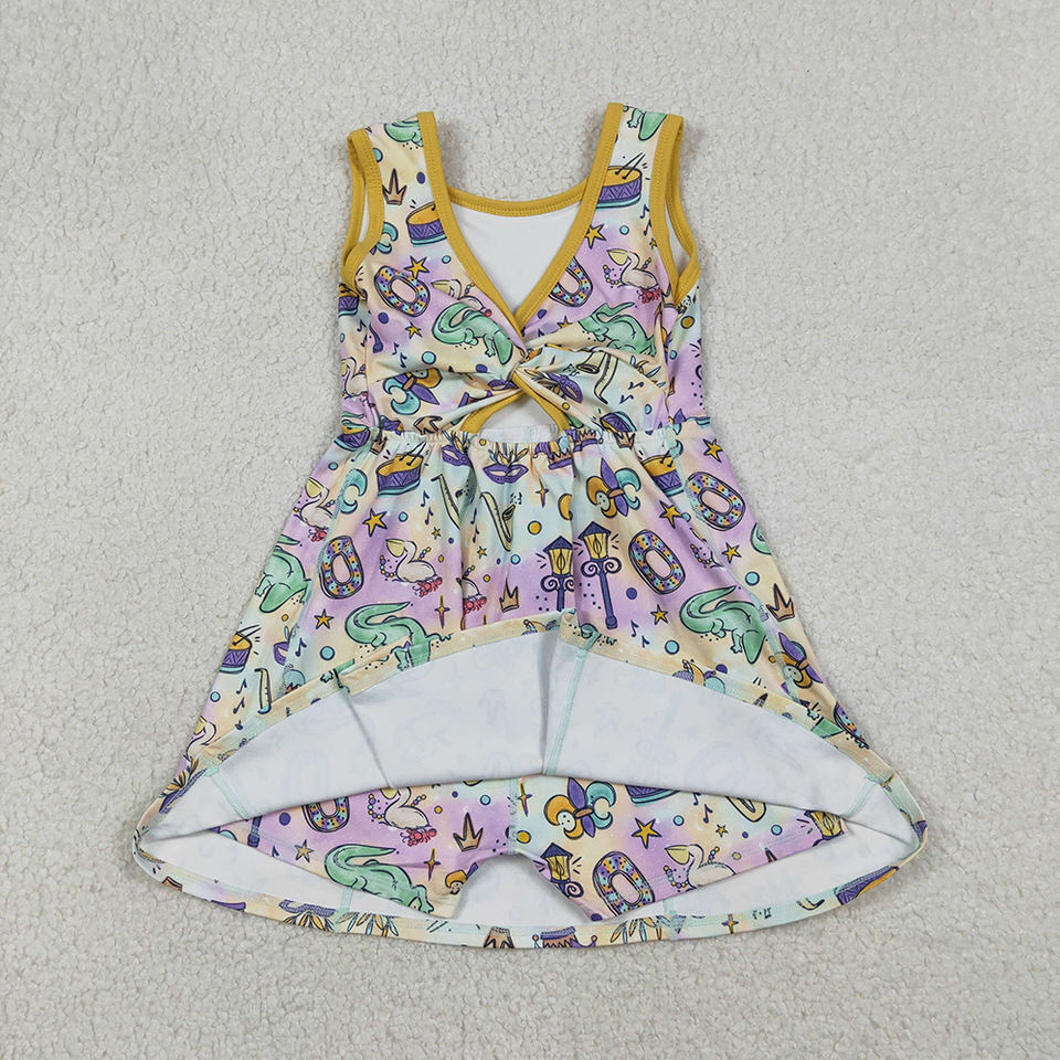 In Stock Little Girls Mardi Gras Anchor Bows Boutique Yoga Dress Children Athletic Clothes Wholesale New Fashion Sports Styles