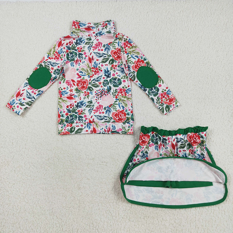 In Stock Red Green Flowers Zip Top Skirts Girls Christmas Outfits Wholesale Toddlers Boutique New Fashion Clothing Baby Clothes