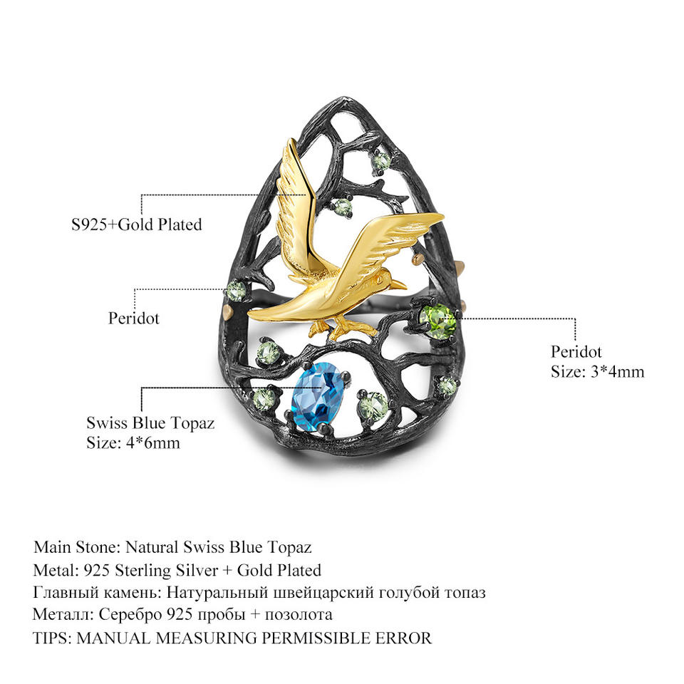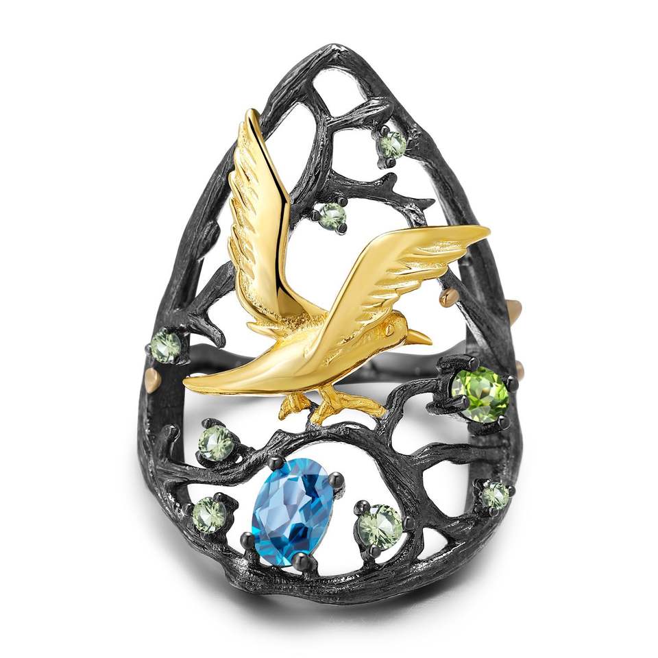 In Stock Vintage 925 Silver Inlaid Blue Crystal Gemstone Ring for Women's Wedding HK Origin High Elegance