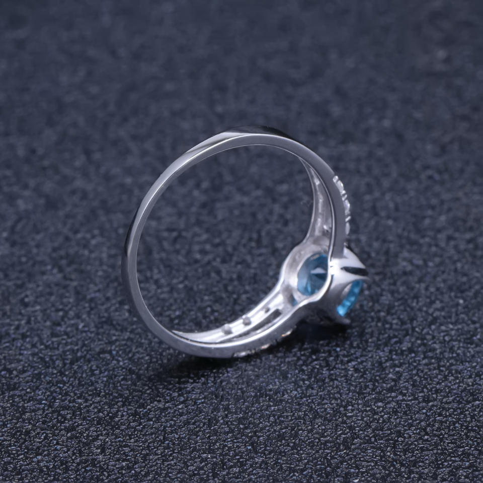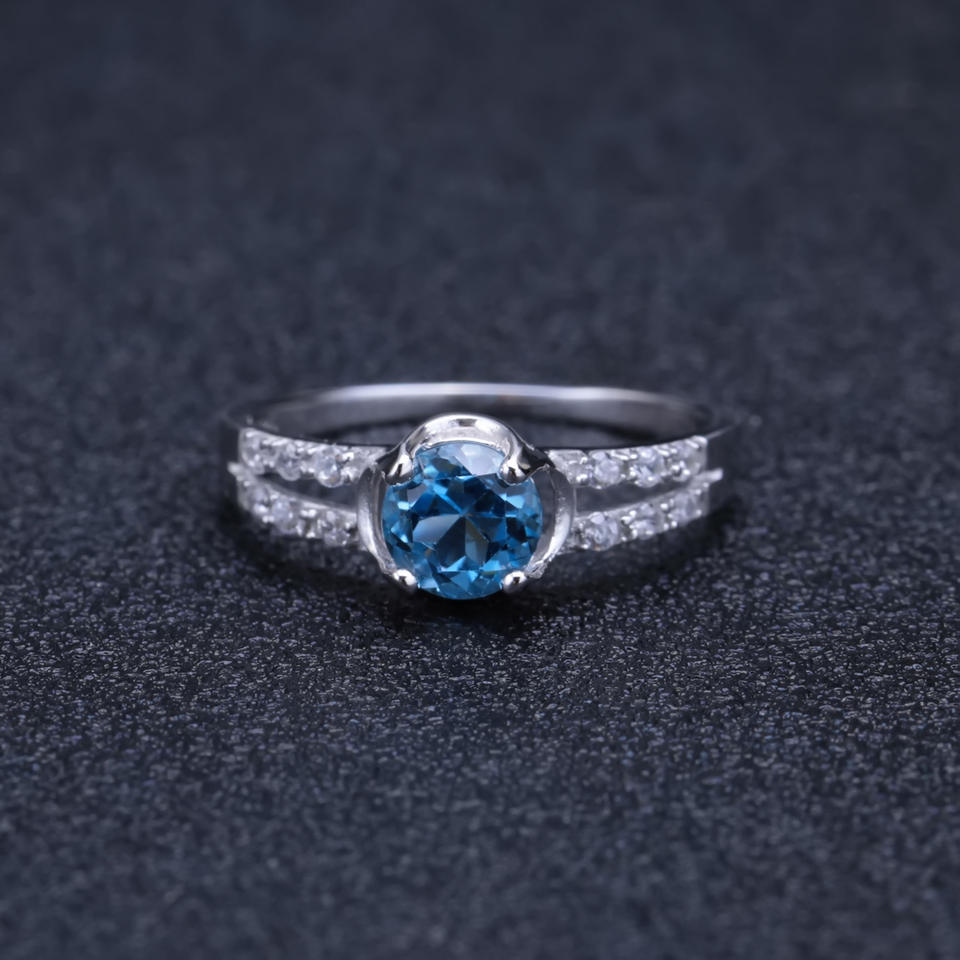 Stock Vintage 925 Silver Inlaid for Blue Crystal Gemstone Ring Women's Wedding High-End Elegant HK Sample Making Service Factory